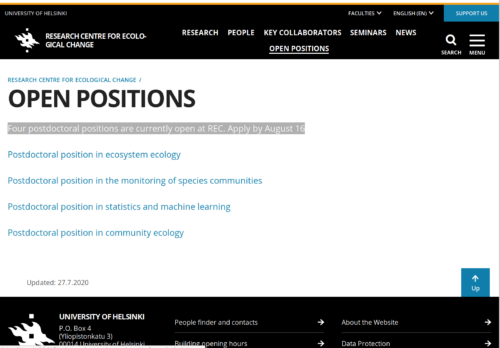 Include also contact information of two persons who are willing to provide a reference letter by separate request. Please submit your application using the University of Helsinki Recruitment System via the link Apply for the position. Applicants who are employees of the University of Helsinki are requested to leave their application by using the employee login.